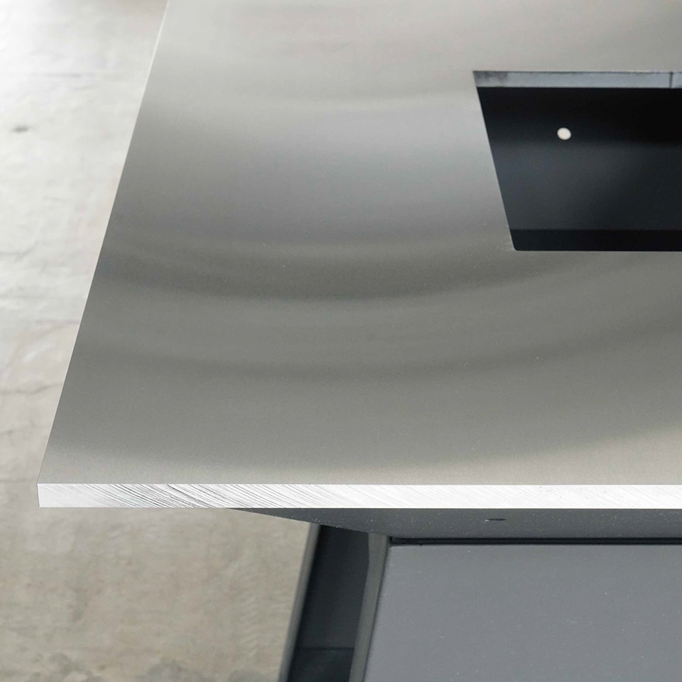 | 材質 | 天板:炭素鋼板 15mm 素地 下台:亜鉛メッキ鋼板 耐熱塗装仕上 |